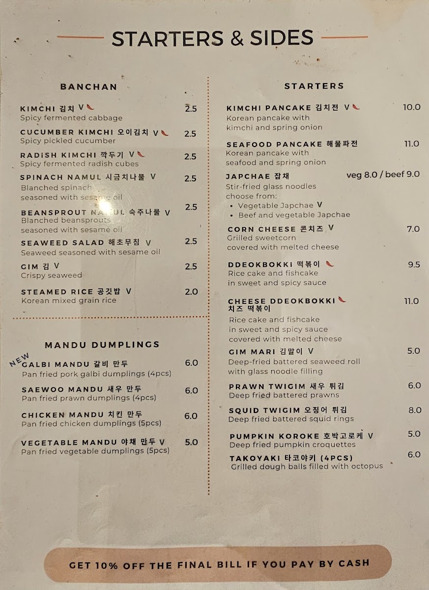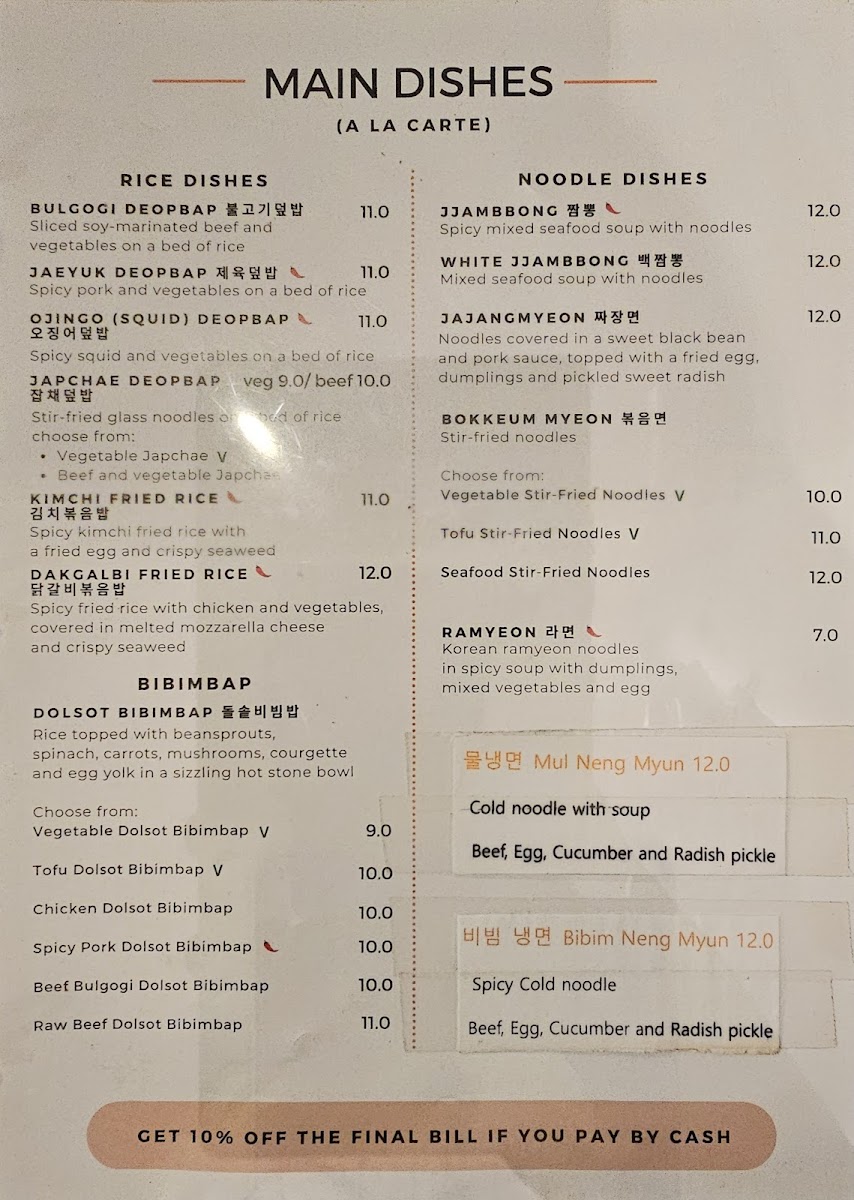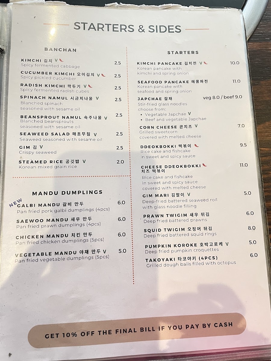This diverse offering makes the menu suitable for casual dining occasions, from light starters to more substantial meals. It is designed to accommodate both quick orders and more leisurely meals, allowing visitors to sample authentic Korean flavors across various dishes.