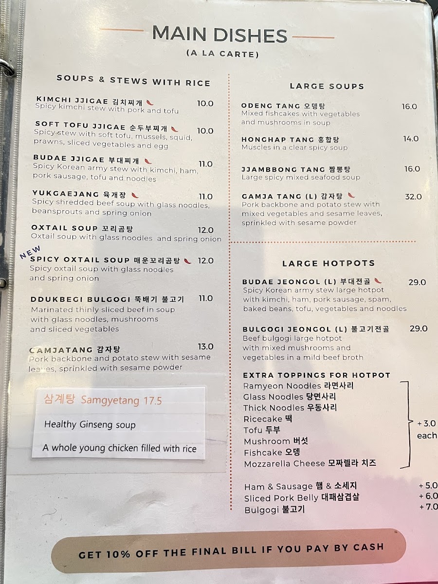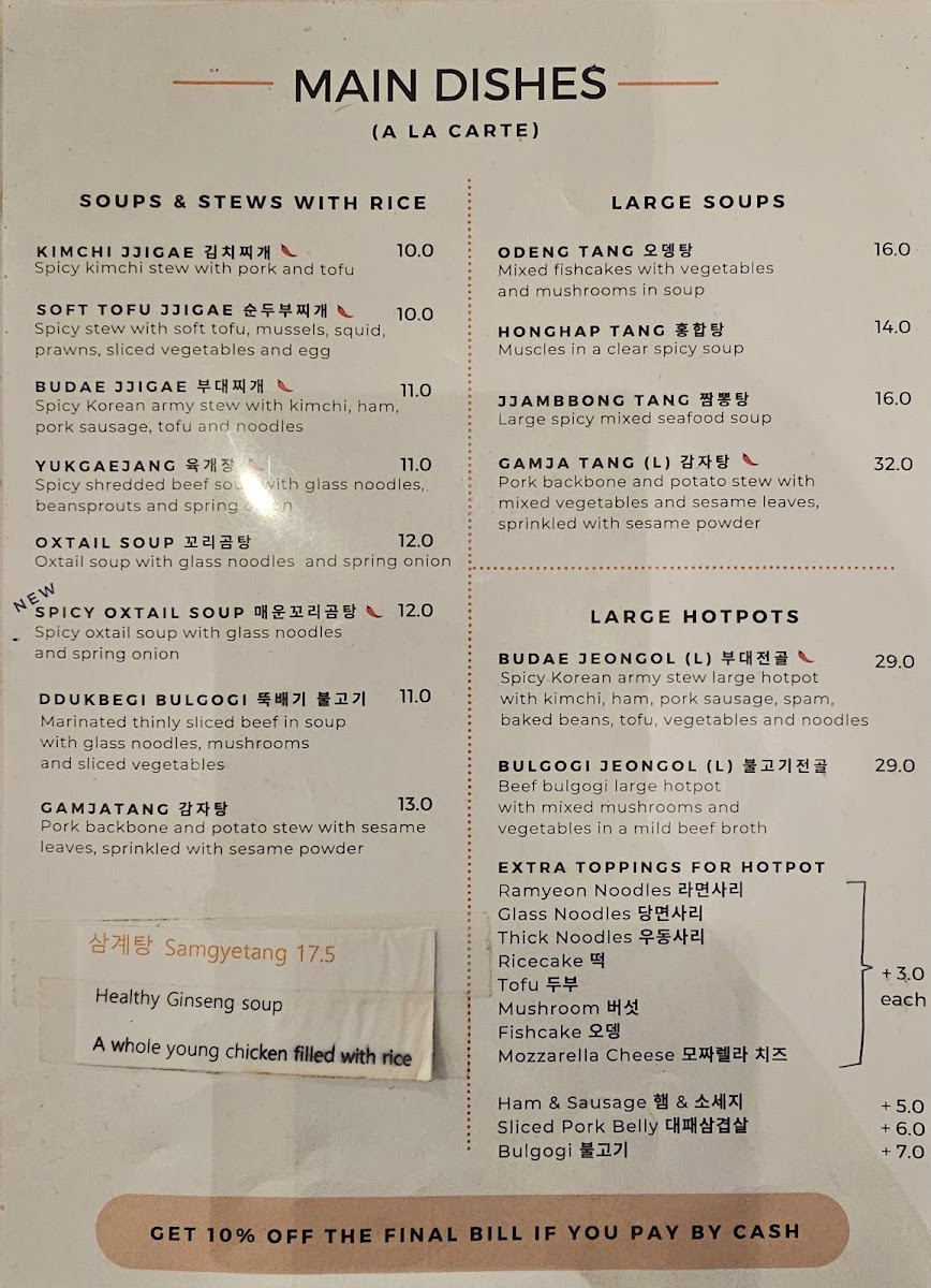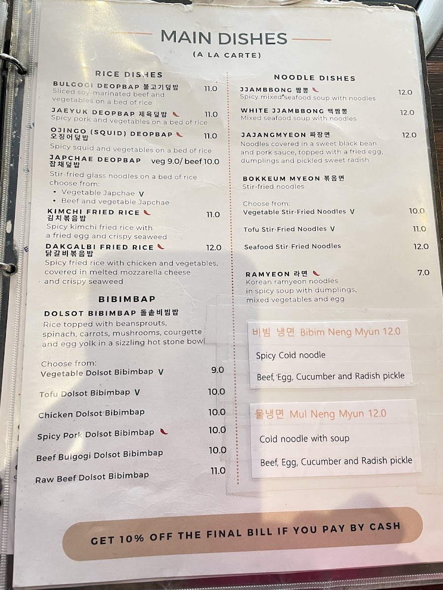 This diverse offering makes the menu suitable for casual dining occasions, from light starters to more substantial meals. It is designed to accommodate both quick orders and more leisurely meals, allowing visitors to sample authentic Korean flavors across various dishes.